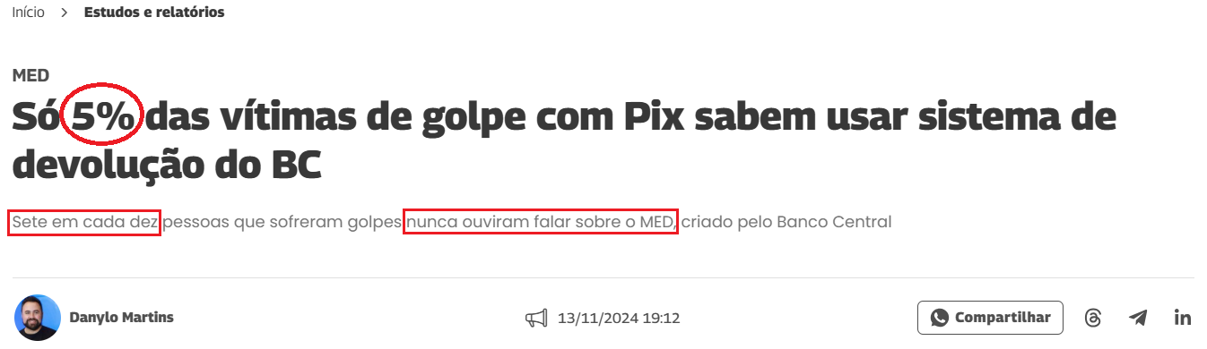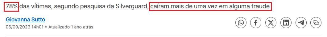 Querendo ou não, se você já caiu em qualquer golpe financeiro como o do PIX, os números indicam que as chances de você cair em outro (em breve) são ALTÍSSIMAS! Quase 80% de chance.