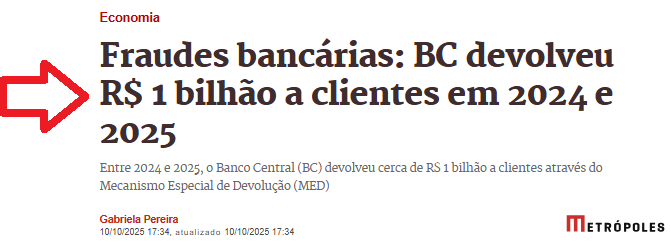 Apenas entre os anos de 2024 e 2025, o Banco Central informou publicamente que já conseguiu devolver em torno de >>R$1 BILHÃO de reais<< para as vítimas de golpes com PIX!